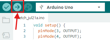 Bagian kabel merah dari LED akan terhubung ke pin 3 dan 4 arduino sedangkan pin negatif akan terhubung ke pin GND dari arduino.
