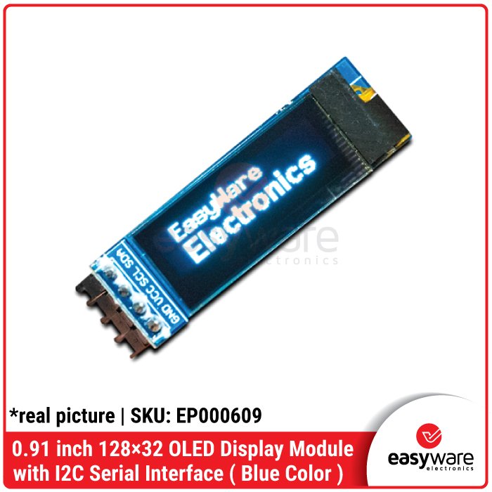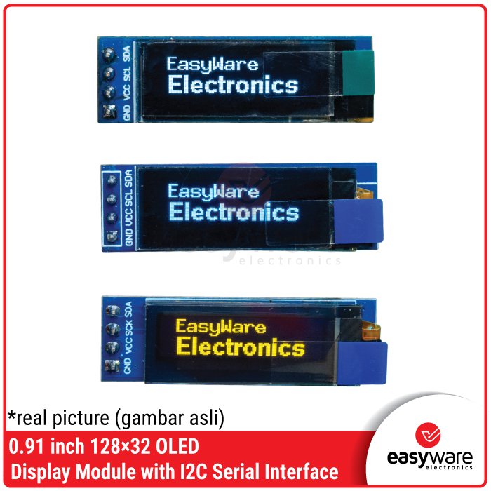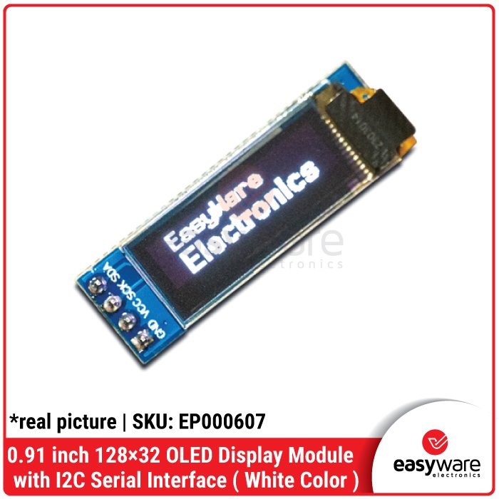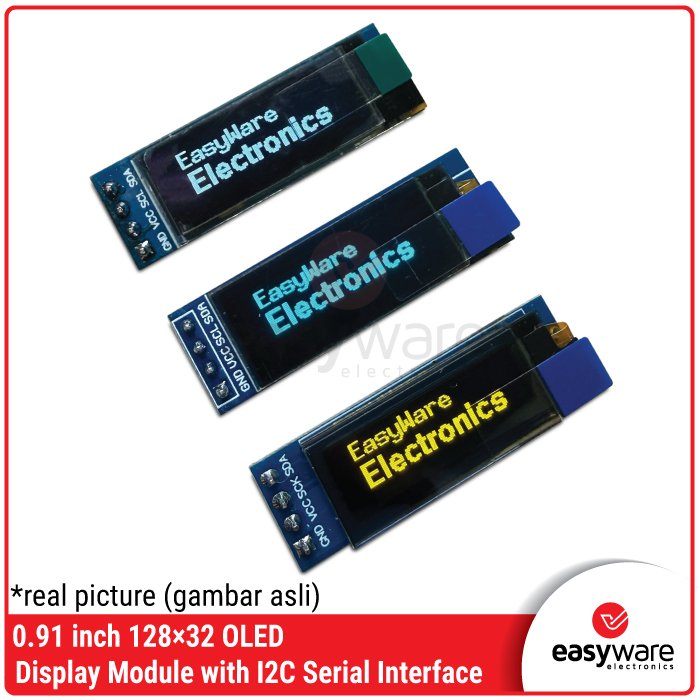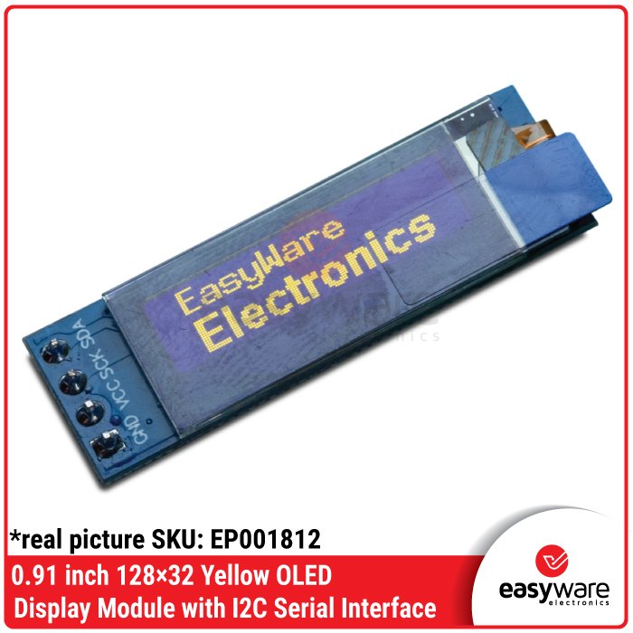 • 0.91 inch 128×32 OLED Display Module with I2C Serial Interface Blue / White / Yellow Color