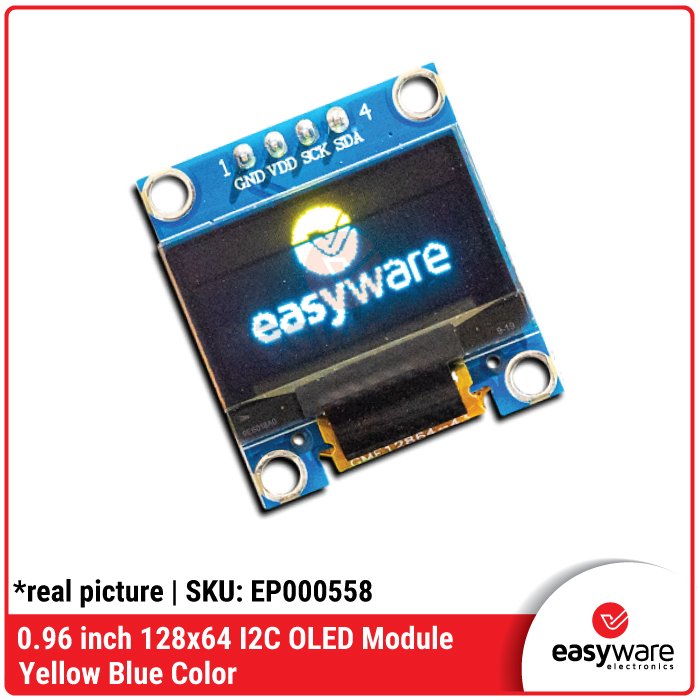 Mau bikin proyek kamu punya tampilan visual yang super jernih, hemat daya, dan modern? Ini dia display favorit para maker: 0.96 inch 128×64 I2C OLED Module! Layar ini siap menghadirkan grafik, ikon, dan teks dengan kontras tajam. Tersedia dalam tiga pilihan warna keren: Biru, Putih, dan Kuning-Biru (Dual Color)! 🚀