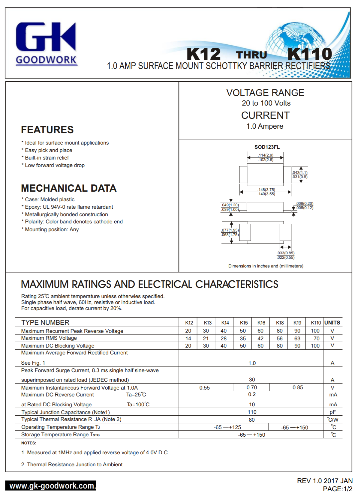 - Judul Produk: GOODWORK K16 Diode Schottky Rectifier 1A SOD-123FL