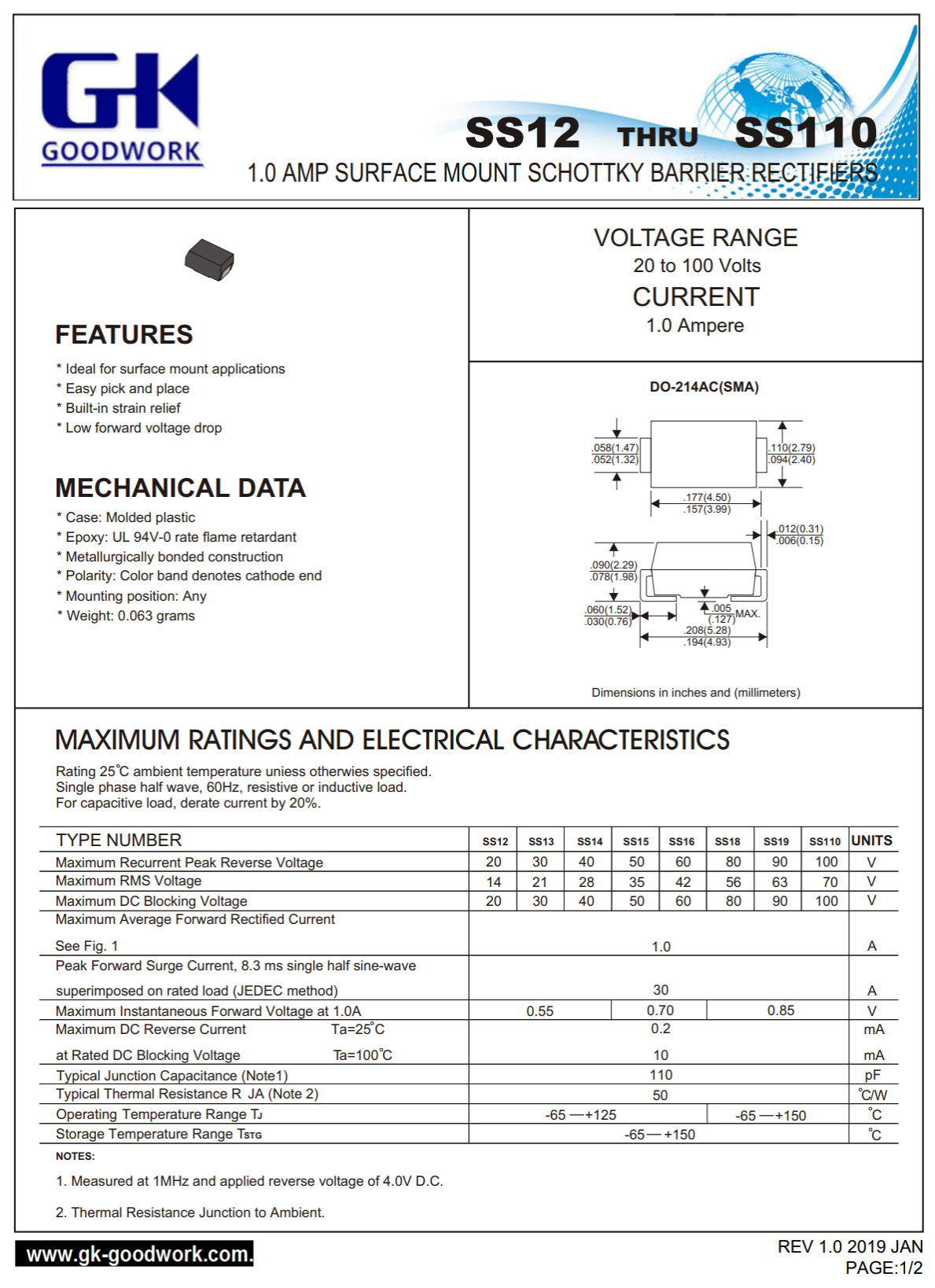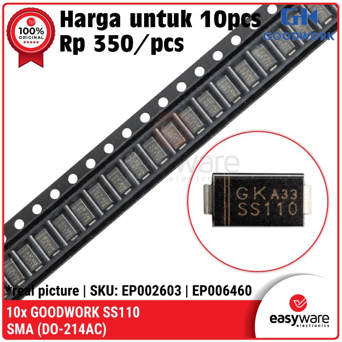 - Judul Produk: GOODWORK SS110 Diode Schottky Rectifier 1A 100V DO-214AC(SMA)