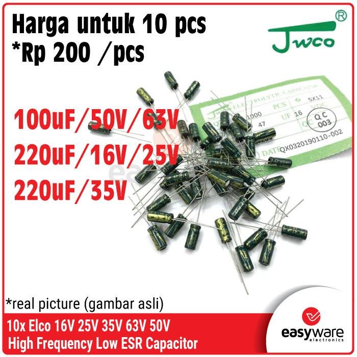10x Elco High Frequency Low ESR Elco 100uF/50V/63V 220uF/16V/25V/35V Elektrolit Kapasitor