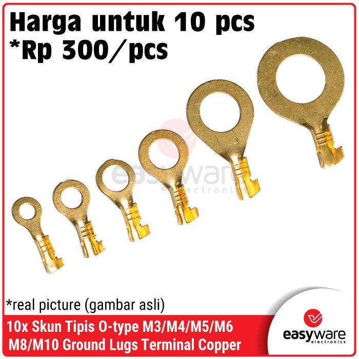 10x Skun Tembaga O-Type Tipis – Ring Terminal Copper Ground Lugs M3 M4 M5 M6 M8 M10