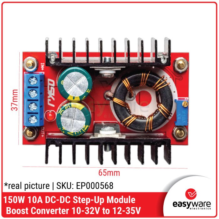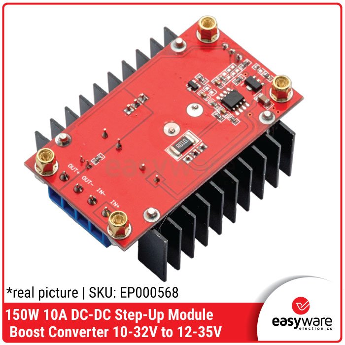 Modul ini dirancang untuk menangani beban berat yang tidak sanggup diatasi oleh modul step-up kecil. Dengan kapasitas daya hingga 150 Watt dan arus mencapai 10 Ampere, modul ini sangat stabil digunakan untuk mengubah tegangan aki (12V) menjadi tegangan charger laptop (19V) atau kebutuhan industri lainnya. Dilengkapi dengan heatsink berukuran besar, modul ini siap bekerja keras dalam waktu lama tanpa takut overheat.