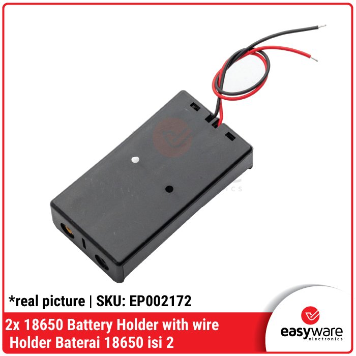 Varian ini sudah dilengkapi dengan sepasang kabel (merah positif, hitam negatif) yang keluar dari holder.
