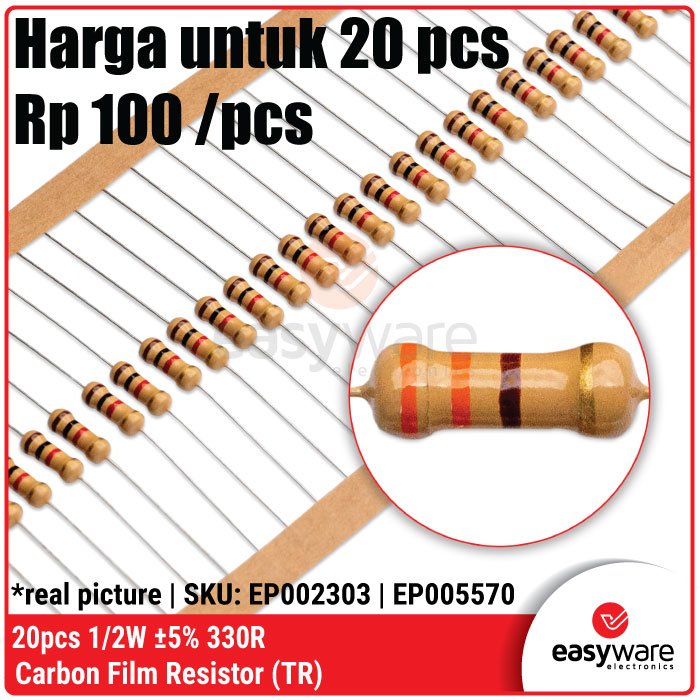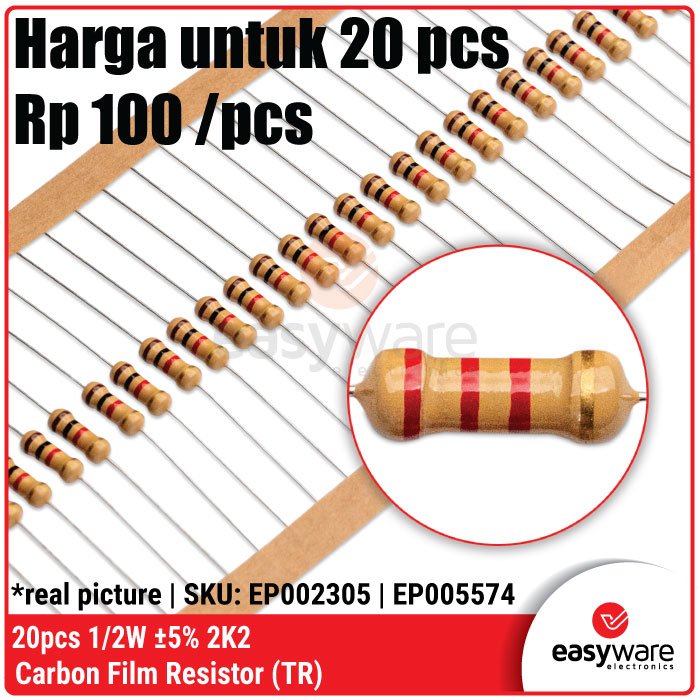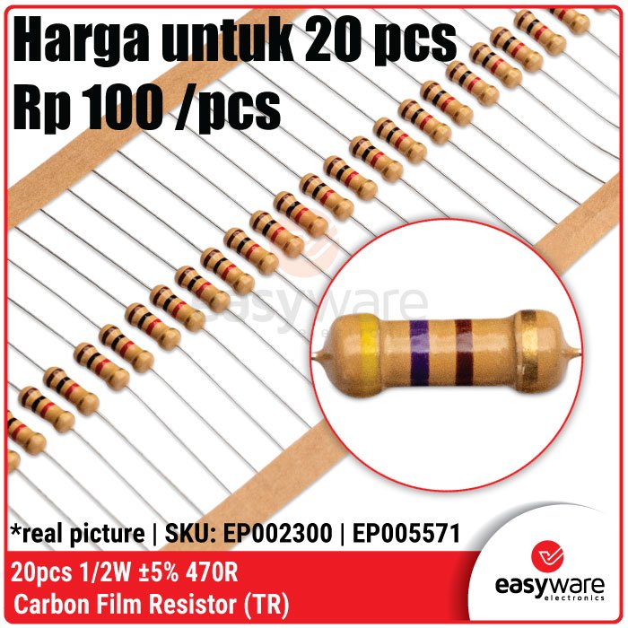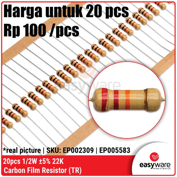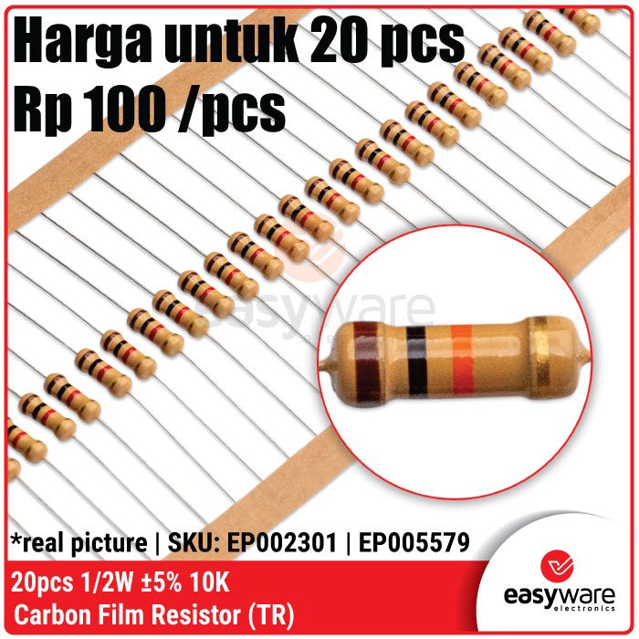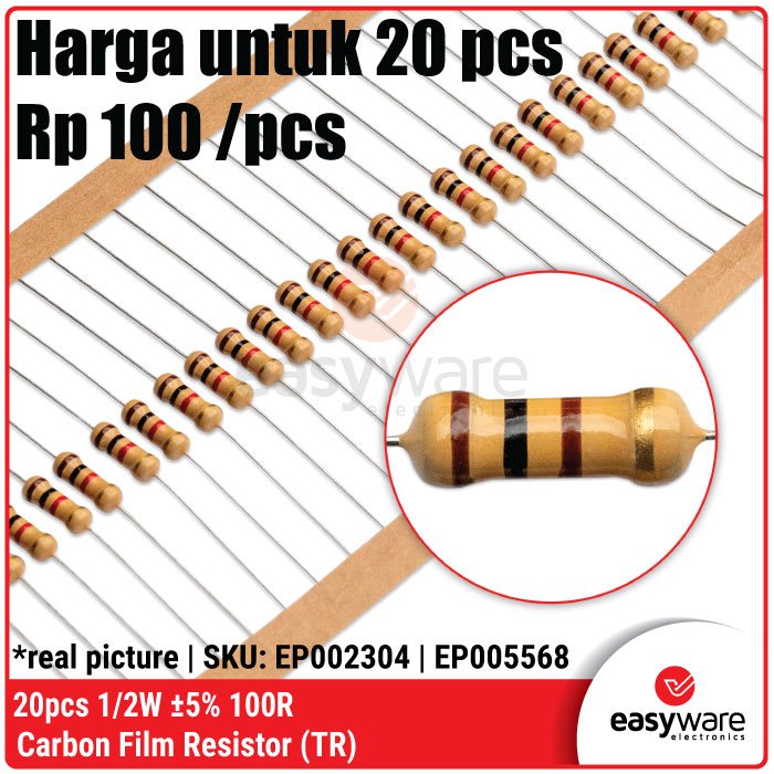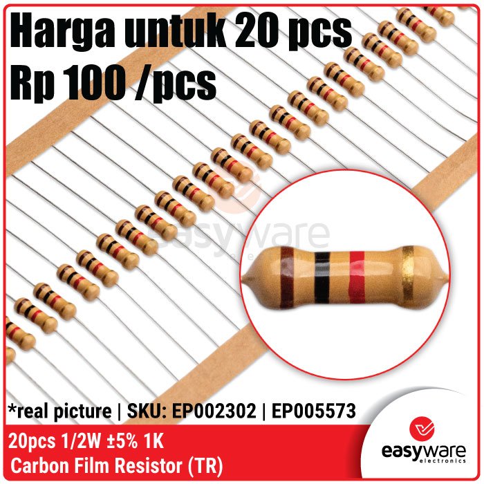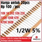 Butuh resistor yang lebih stabil dari ukuran 1/4W tapi tetap hemat ruang? Resistor Carbon Film 1/2 Watt (0.5W) adalah pilihan ideal untuk proyek kelas menengah. Dengan kapasitas daya dua kali lipat dari resistor standar, komponen ini memberikan keamanan ekstra terhadap panas (overheat) pada rangkaian yang bekerja terus-menerus! 🚀