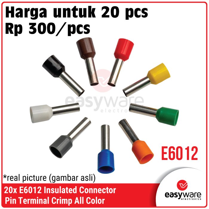 - Judul Produk: 20x E6012 Insulated Pin Terminal Crimp (Ferrule)