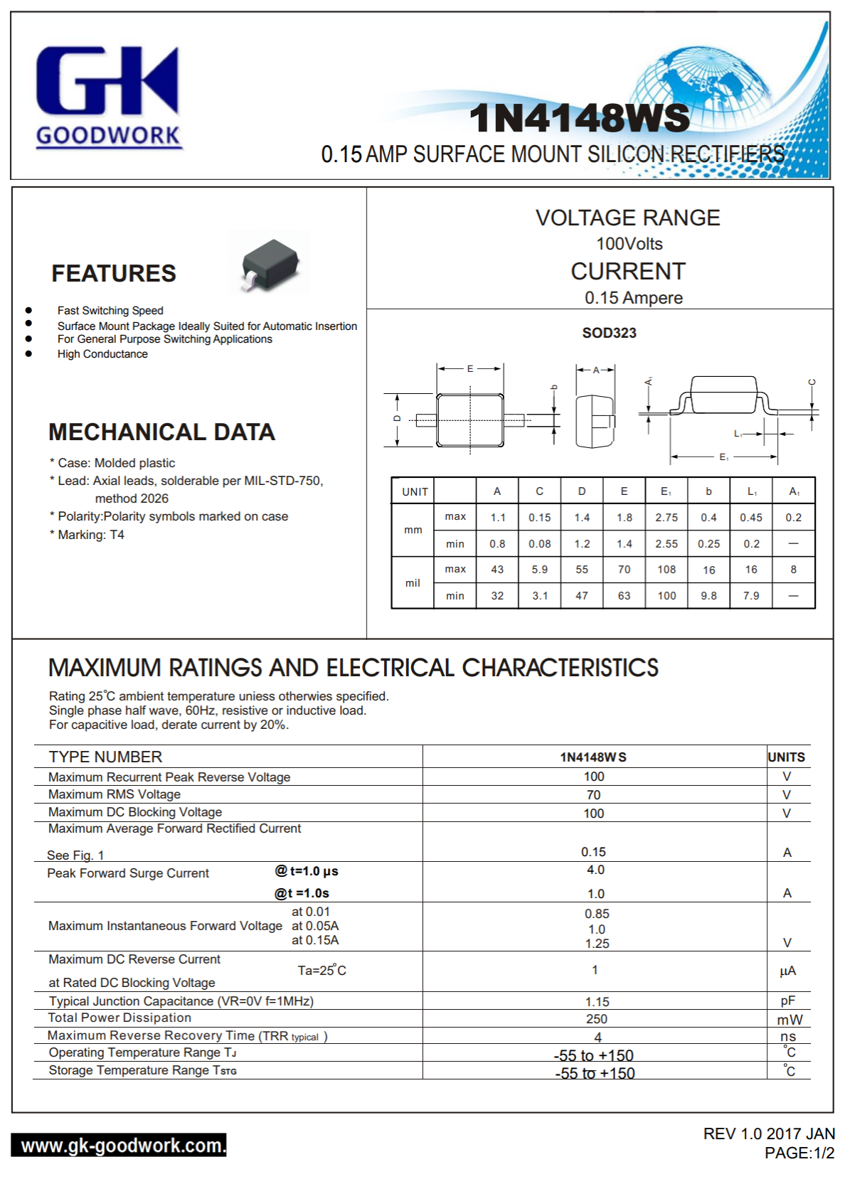- Judul Produk: GOODWORK 1N4148WS T4 SOD-323