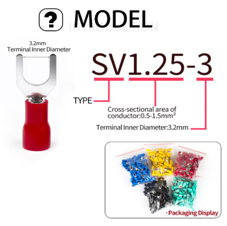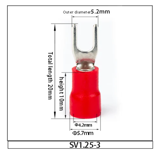 - 📏 Ukuran Standar (SV-1.25-3): Cocok untuk kabel berukuran 0.5 – 1.5 1$\text{mm}^2$ (misalnya AWG 22-16) dan sekrup terminal berukuran M3.2