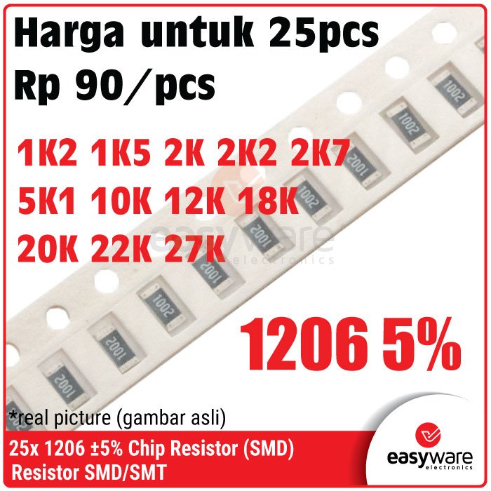 Resistor SMD (Surface Mount Device) dengan ukuran 1206 adalah salah satu standar yang paling umum dan serbaguna. Ukurannya yang 3.2mm x 1.6mm sangat ideal untuk proyek yang butuh kerapian dan efisiensi ruang di PCB.