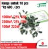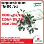| Kapasitansi | 220uF 100V, 1000uF 25V, 1000uF 35V, 2200uF 25V, 2200uF 35V, 100uF 160V |