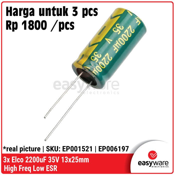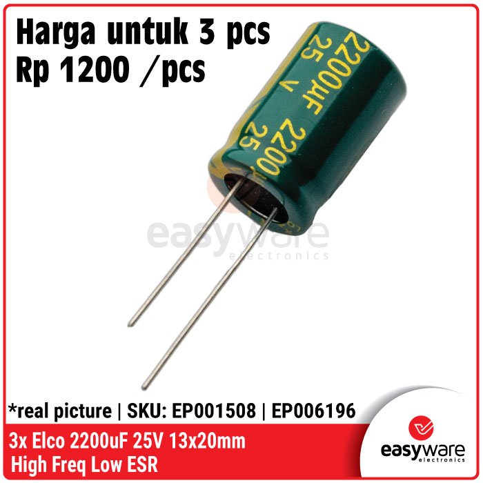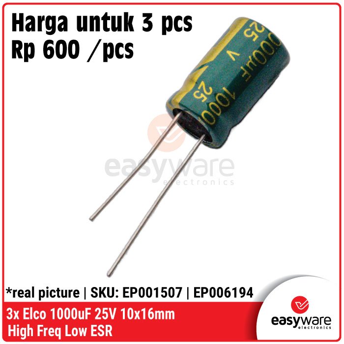 Butuh kapasitor yang tahan banting untuk rangkaian Switching Power Supply (SMPS) atau modul Step-Down? Kapasitor Elco High Frequency Low ESR ini adalah jawabannya! Berbeda dengan elco standar, tipe Low ESR (Equivalent Series Resistance) dirancang khusus untuk menangani riak arus (ripple) tinggi tanpa cepat panas, sehingga output tegangan proyekmu jadi jauh lebih bersih dan stabil. 🚀