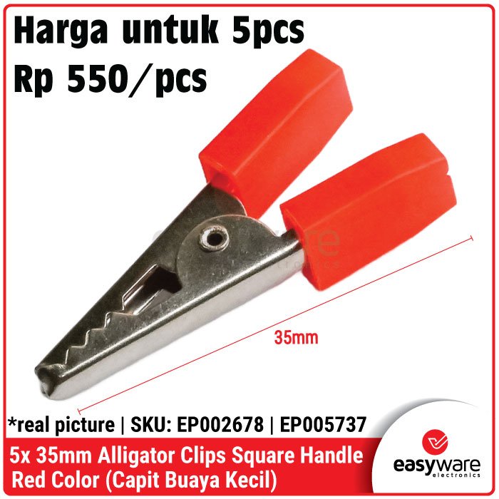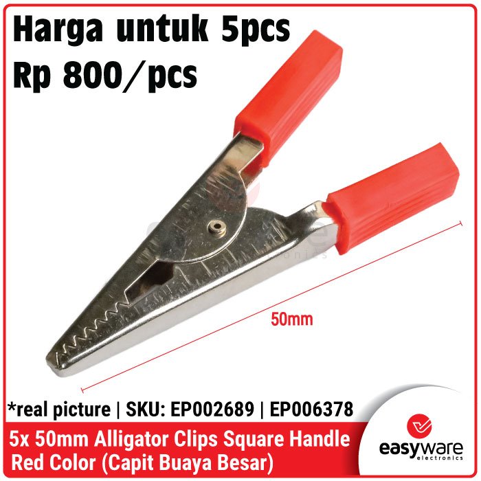 5pcs Alligator Clips 35mm & 50mm Square Handle Black Red Capit Buaya Kabel Test