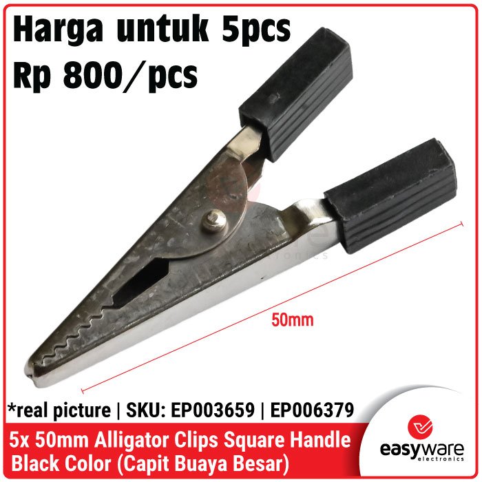 • 5pcs Alligator Clips 35mm & 50mm Square Handle Black Red Capit Buaya Kabel Test