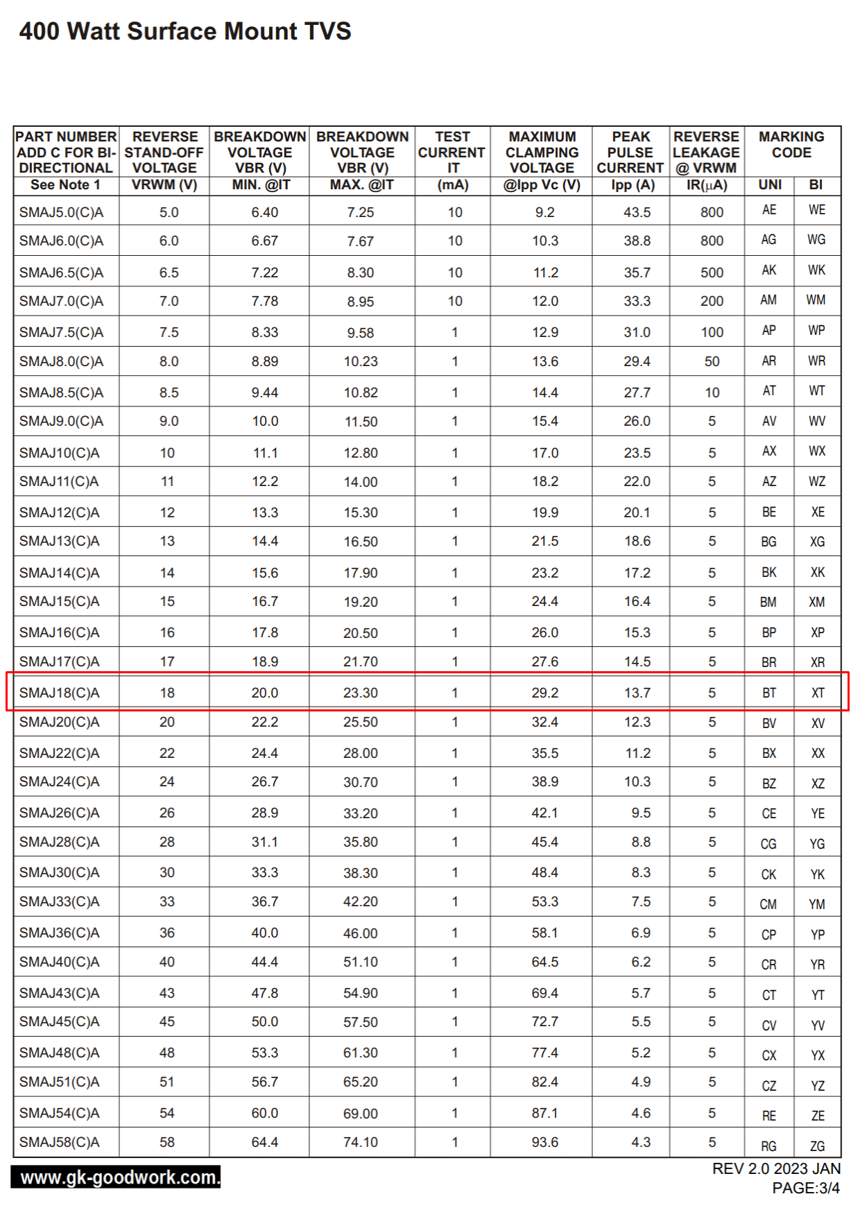 • 5pcs Dioda SMAJ18CA XT DO-214 TVS Diode SMAJ18 XT SMA SMD 13.7A 400W