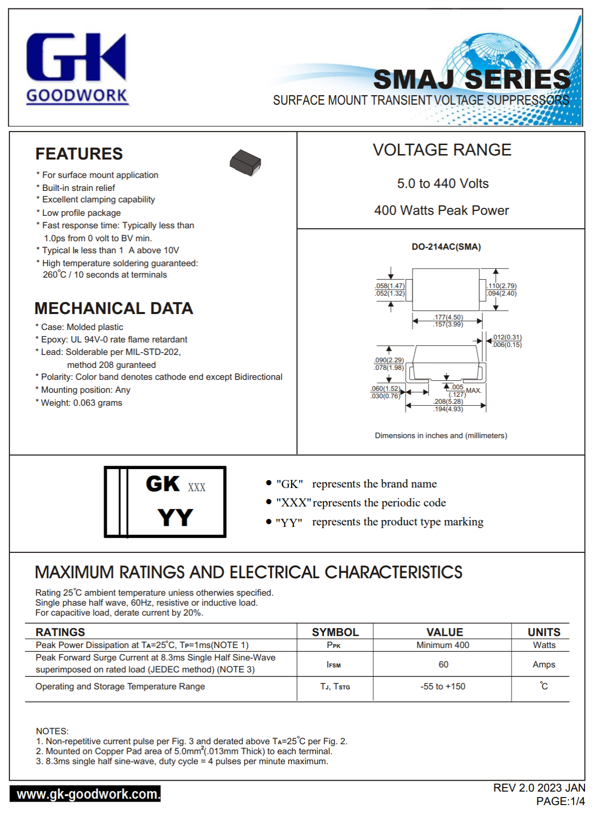 • ✨ Paket SMD Ringkas: Paket DO-214AC (SMA) yang kecil dan tipis, ideal untuk desain PCB yang padat.