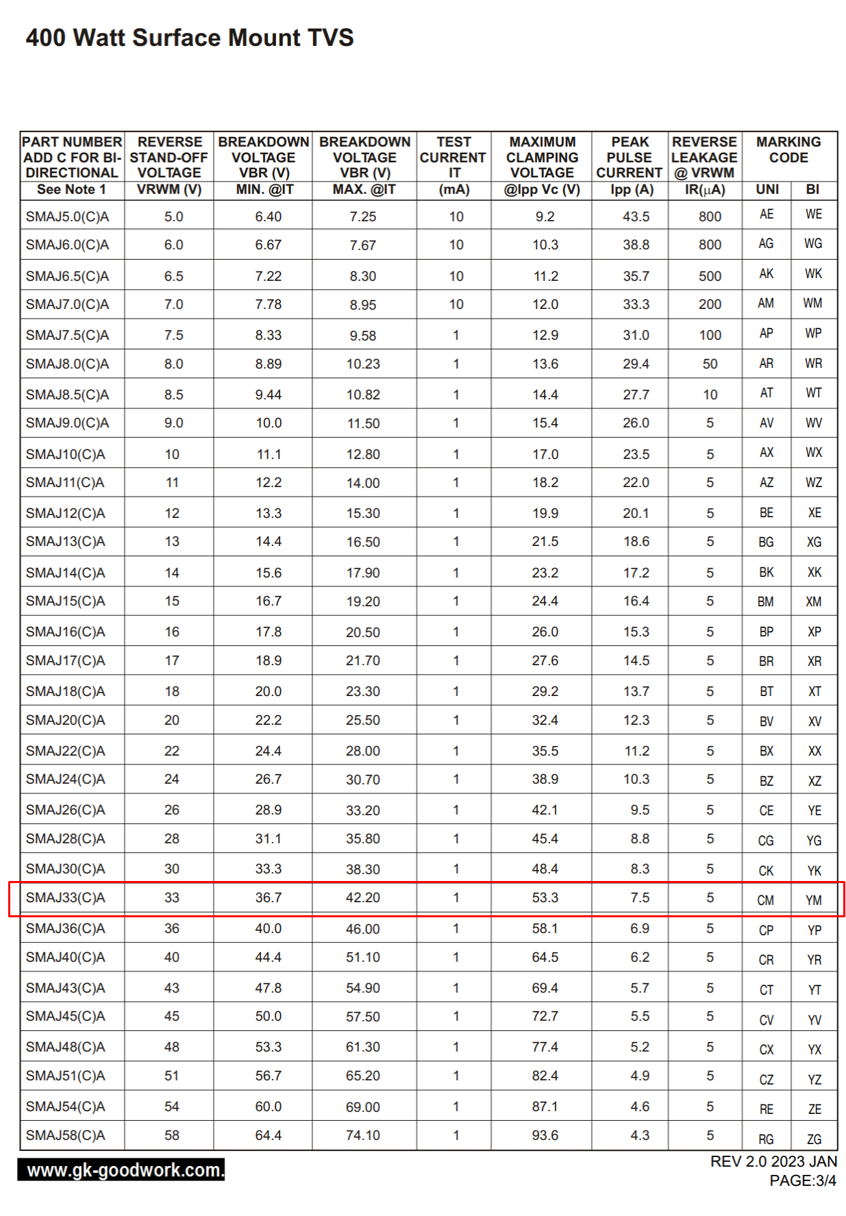 • 5pcs Dioda SMAJ33CA YM DO-214 TVS Diode SMAJ33 CA SMA SMD 7.5A 400W