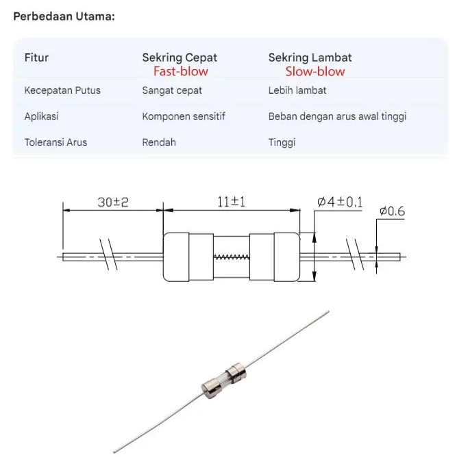 • 🛡️ Proteksi Ganda: Tersedia pilihan Fast Blow (F) dan Slow Blow (T) untuk berbagai kebutuhan proteksi.