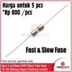 • 5pcs Glass Tube Fuse 250V - Sekring Kaca Fast Blow & Slow Blow Berbagai Amper 1A, 2A, 3A, 5A