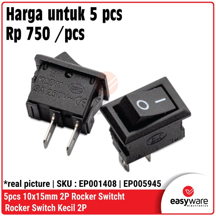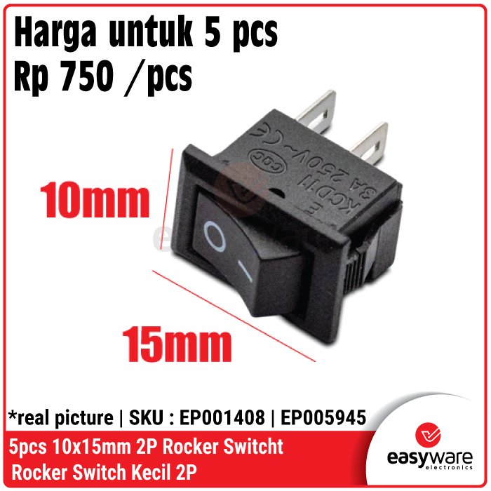 5pcs Mini Rocker Switch 2 Pin 10x15mm – Saklar On-Off Power Kecil SPST