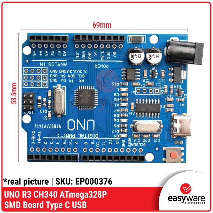 Arduino UNO R3 Clone CH340 CH340G SMD Type B Type C USB SMD Board