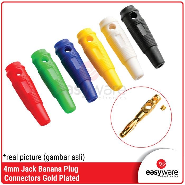 Banana Plug 4mm Gold Plated – Konektor Jack Audio & Power Supply Merah Kuning Hijau Biru Hitam Putih
