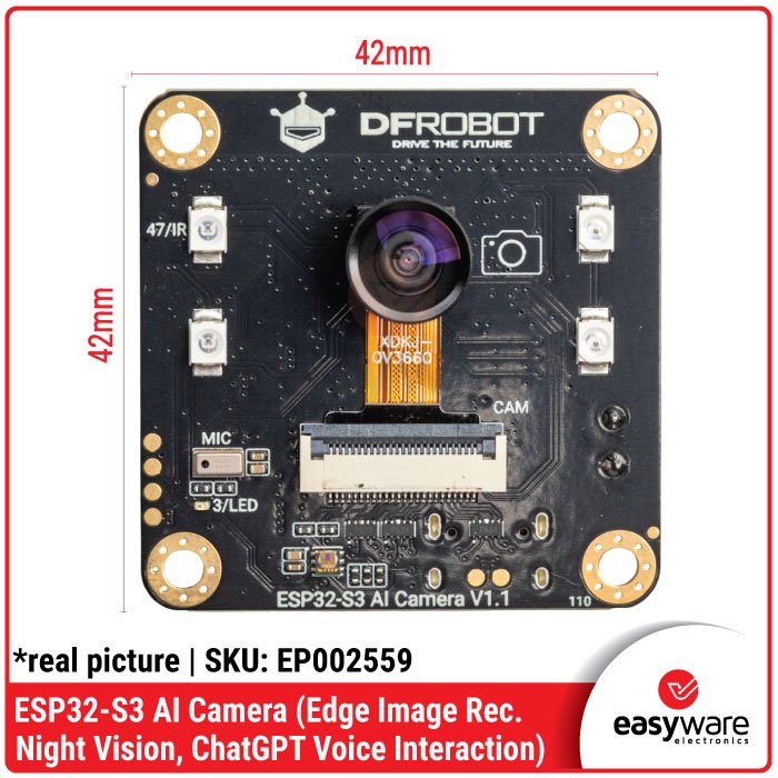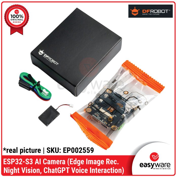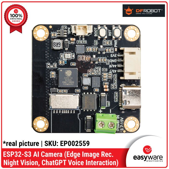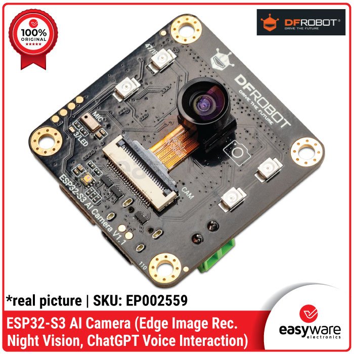 - Judul Produk: DFRobot ESP32-S3 AI Camera Module – Edge Image Recognition, Night Vision, & ChatGPT Voice Interaction