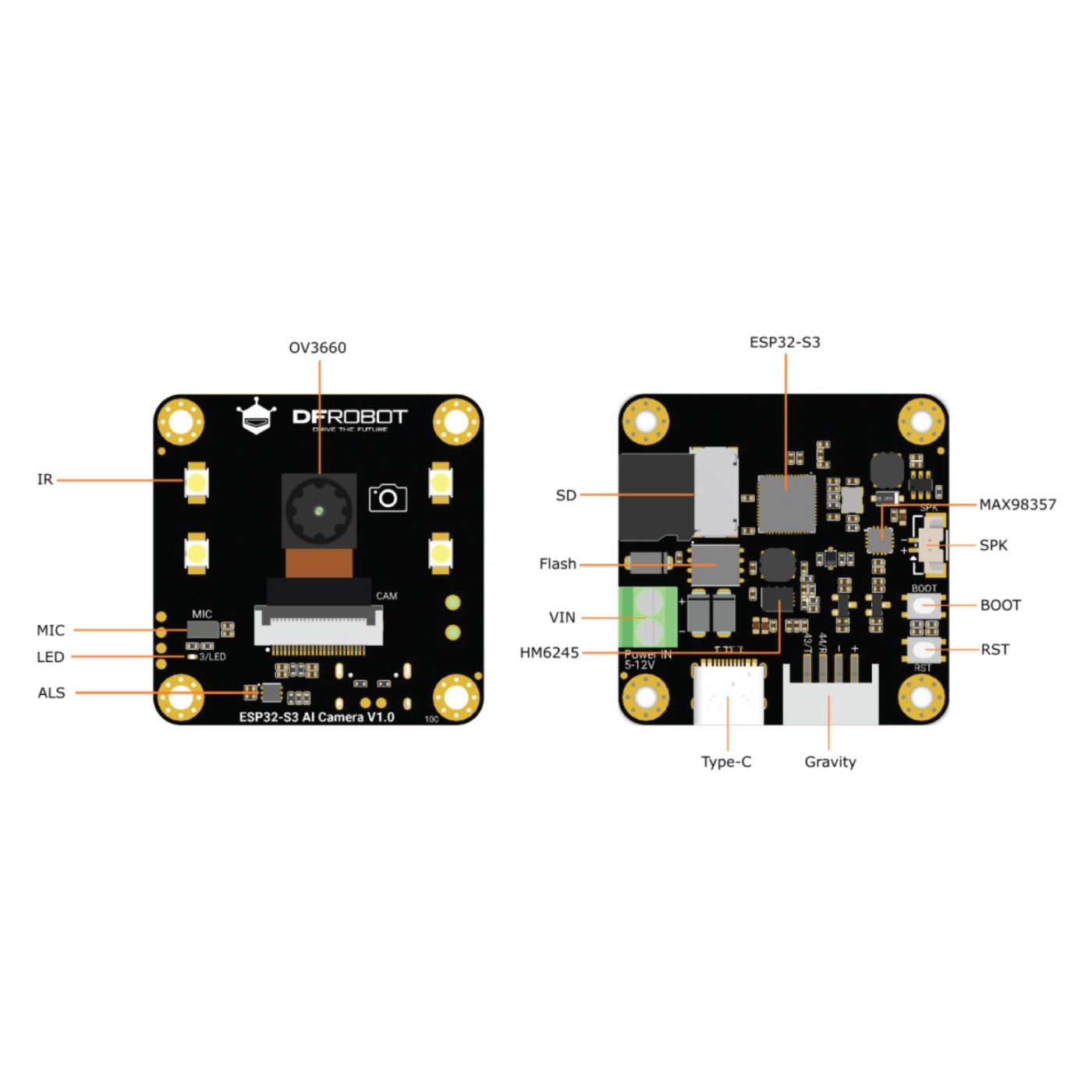 DFRobot ESP32-S3 ESP32 S3 AI Camera Module Edge Image Recognition, Night Vision, ChatGPT Voice Interaction