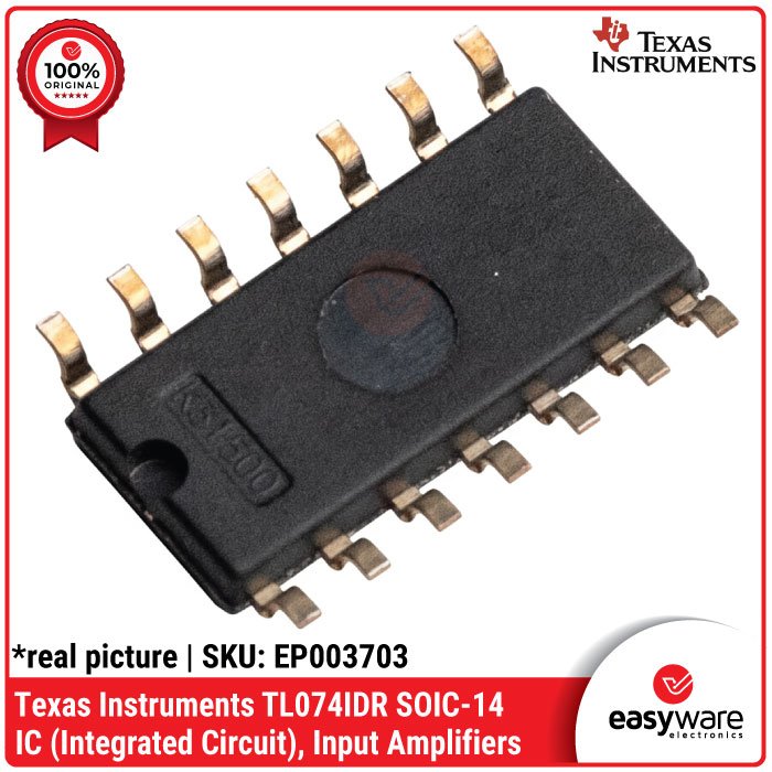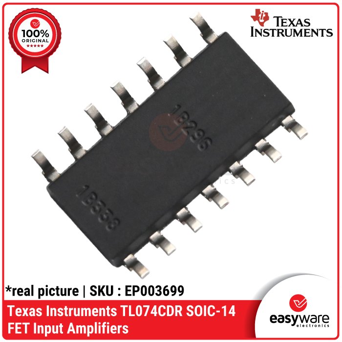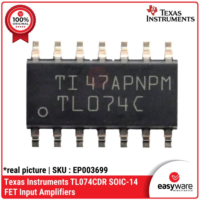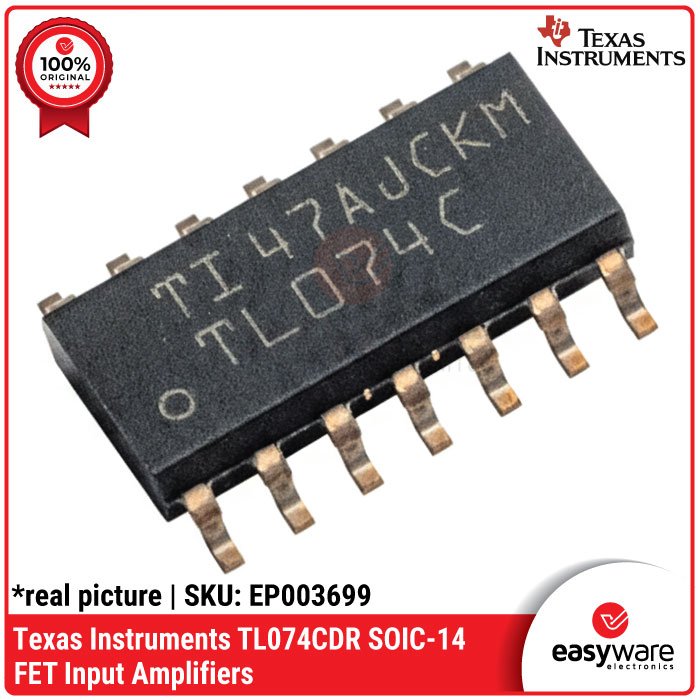 • IC Amplifier TL074 - TL074CDR (0-70°C) & TL074IDR (-40-85°C), Quad Op-Amp JFET SMD - Texas Instruments