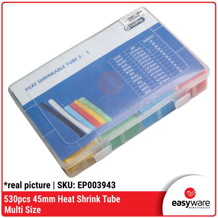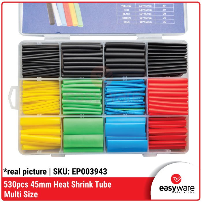 Kit Heat Shrink Tube 530pcs – Selongsong Bakar Multi Warna & Diameter, Rasio 2:1