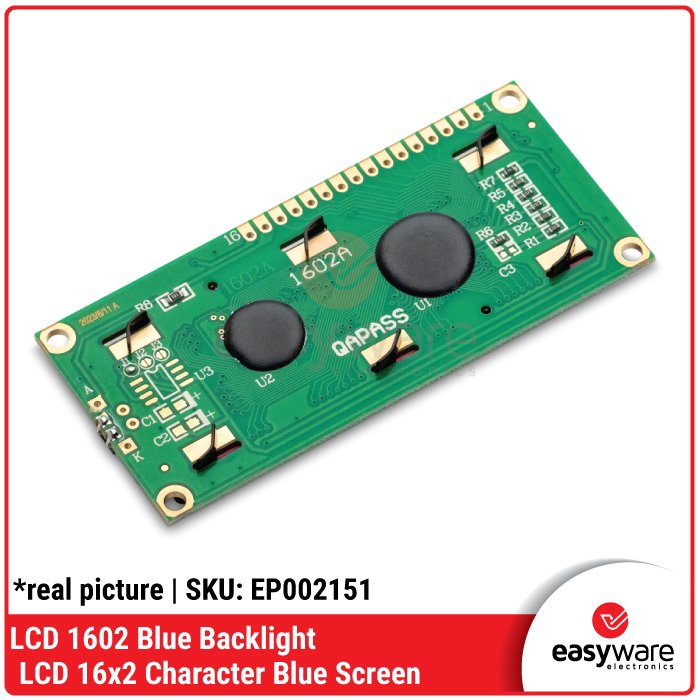 LCD 1602 16×2 Blue Backlight White Character – Display Karakter 16×2 Biru 5V