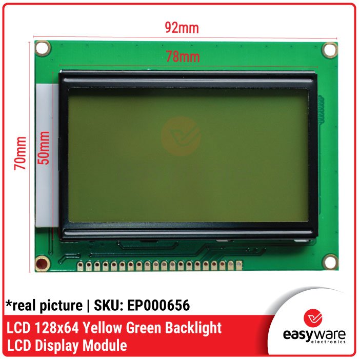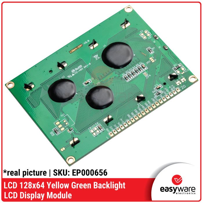 • LCD Grafis 128x64 Yellow Green Backlight - Display LCD 128x64 untuk Arduino