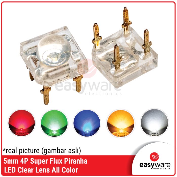 - Judul Produk: 5mm 4P Super Flux Piranha LED Clear Lens