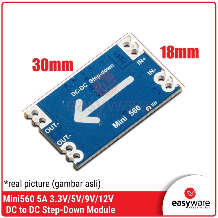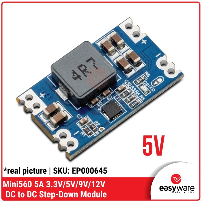 • MINI560 DC-DC Step Down Module 5A - Buck Converter Output 3.3V, 5V, 9V, 12V Fixed