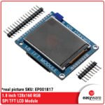 Modul LCD TFT 1.8″ SPI adalah layar berwarna yang menggunakan chip ST7735 sebagai penggeraknya. Berbeda dengan OLED yang hanya satu warna, layar ini mendukung 65.000 warna (16-bit RGB), sehingga kamu bisa membuat antarmuka pengguna (UI) yang jauh lebih menarik dan profesional.