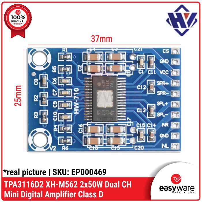 Butuh tenaga audio yang besar tapi punya ruang yang sangat terbatas? XH-M562 TPA3116D2 adalah amplifier “si kecil rawit” sesungguhnya! Menggunakan chip TPA3116D2 asli dari Texas Instruments, modul ini mampu menyemburkan daya hingga 2x50W Stereo dalam ukuran yang tidak lebih besar dari korek api gas! 🚀