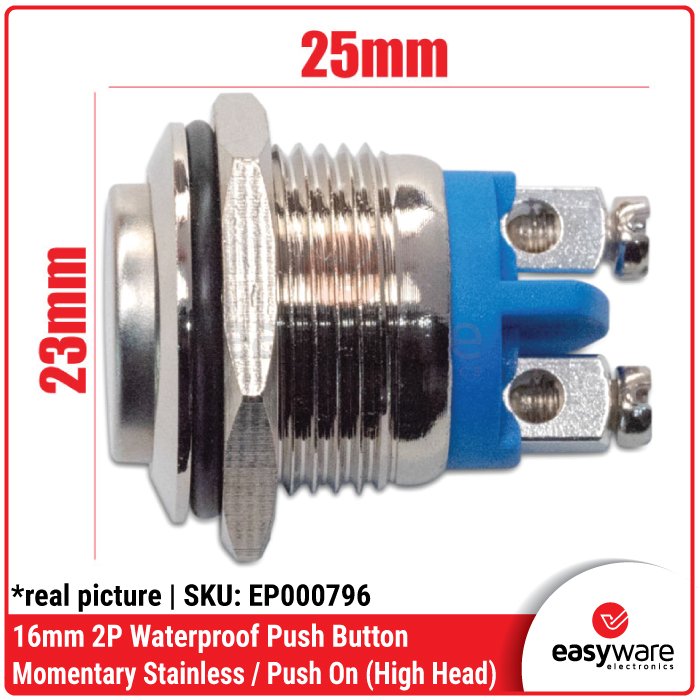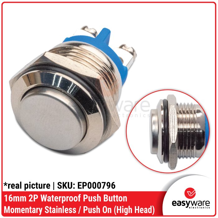Ingin panel proyekmu terlihat mewah sekaligus tahan banting? Push Button Stainless Steel 16mm ini adalah standar industri untuk estetika dan durabilitas. Terbuat dari material Stainless Steel 304, saklar ini tidak hanya anti karat, tapi juga memiliki rating Waterproof IP65. Sangat cocok untuk mesin kopi DIY, panel kontrol mesin, klakson kendaraan, hingga tombol bel rumah yang terpapar cuaca! 🚀
