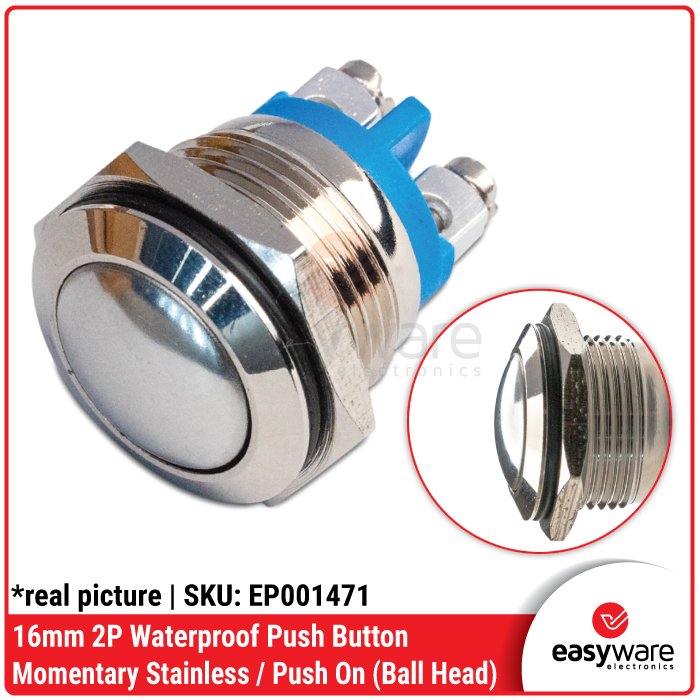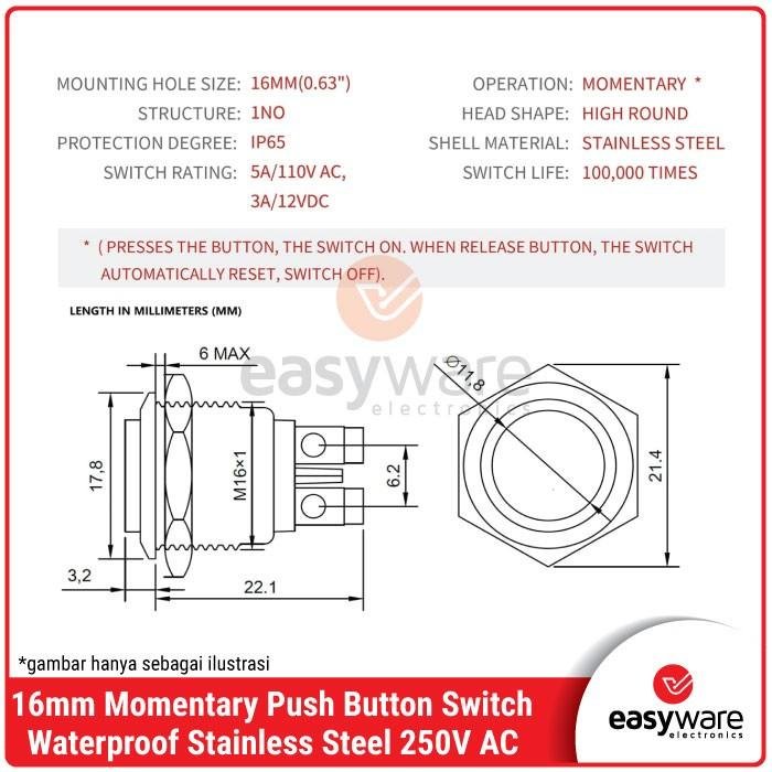 Momentary Switch 16mm Stainless Push Button On Waterproof Stainless