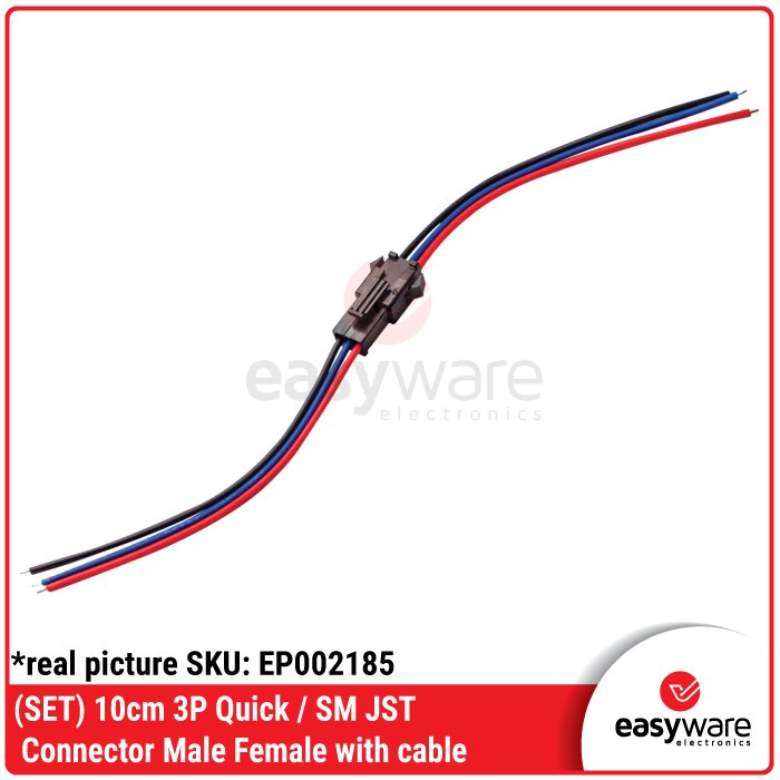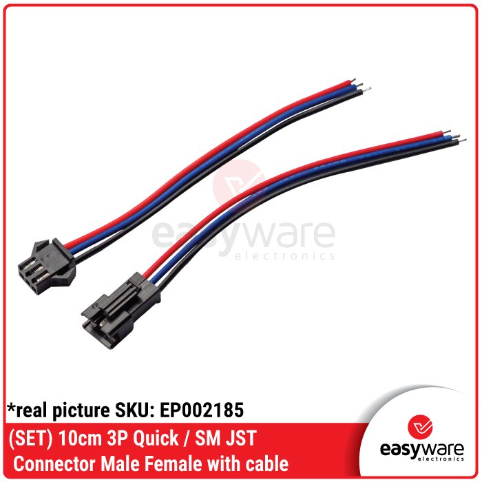 (SET) 10cm 3P Quick / SM JST Connector: Pilihan terbaik jika kamu merakit LED Strip RGB (Addressable) atau sensor yang membutuhkan jalur VCC, GND, dan DATA dalam satu konektor ringkas.