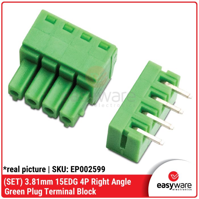 [SET] Terminal Block 3.81mm 15EDG 4 Pin Right Angle – Green Plug Male Female Siku Konektor PCB
