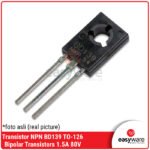 Dengan kemampuan arus kolektor hingga 1.5 Ampere dan tegangan hingga 80 Volt, BD139 adalah komponen yang sempurna untuk rangkaian penguat audio (amplifier), driver motor kecil, power supply, atau aplikasi switching berdaya menengah. Kemasan TO-126 memiliki tab metal yang membantu disipasi panas, menjaga transistor tetap dingin saat bekerja
