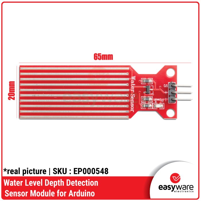 Water Level Depth Sensor dirancang untuk mendeteksi ketinggian air dengan cara mengukur konduktivitas melalui jalur-jalur tembaga paralel yang terekspos. Semakin banyak jalur yang terendam air, semakin besar tegangan analog yang dihasilkan, sehingga kamu bisa mengetahui seberapa dalam air tersebut.