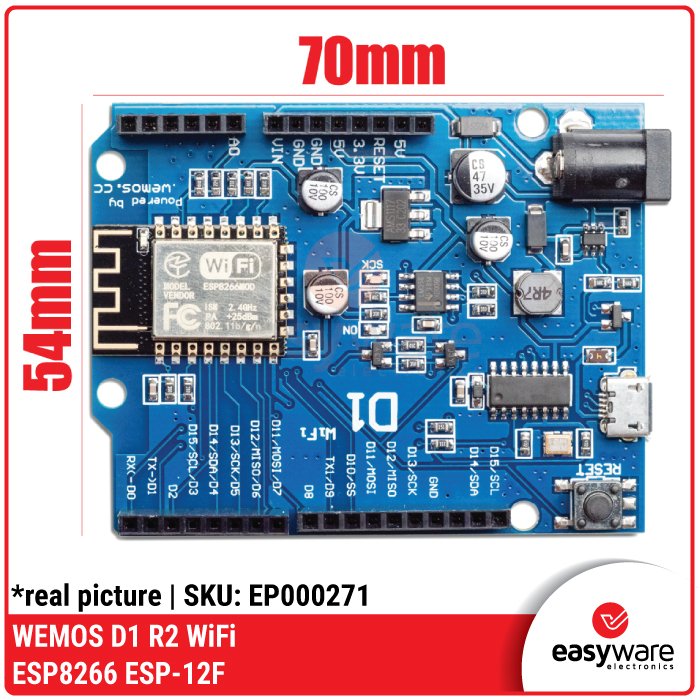 Jangan biarkan proyekmu cuma bisa offline, #RekanEasyWare! Dapatkan WEMOS D1 R2 ESP8266 ini dan gabungkan kemudahan Arduino dengan kecanggihan WiFi.